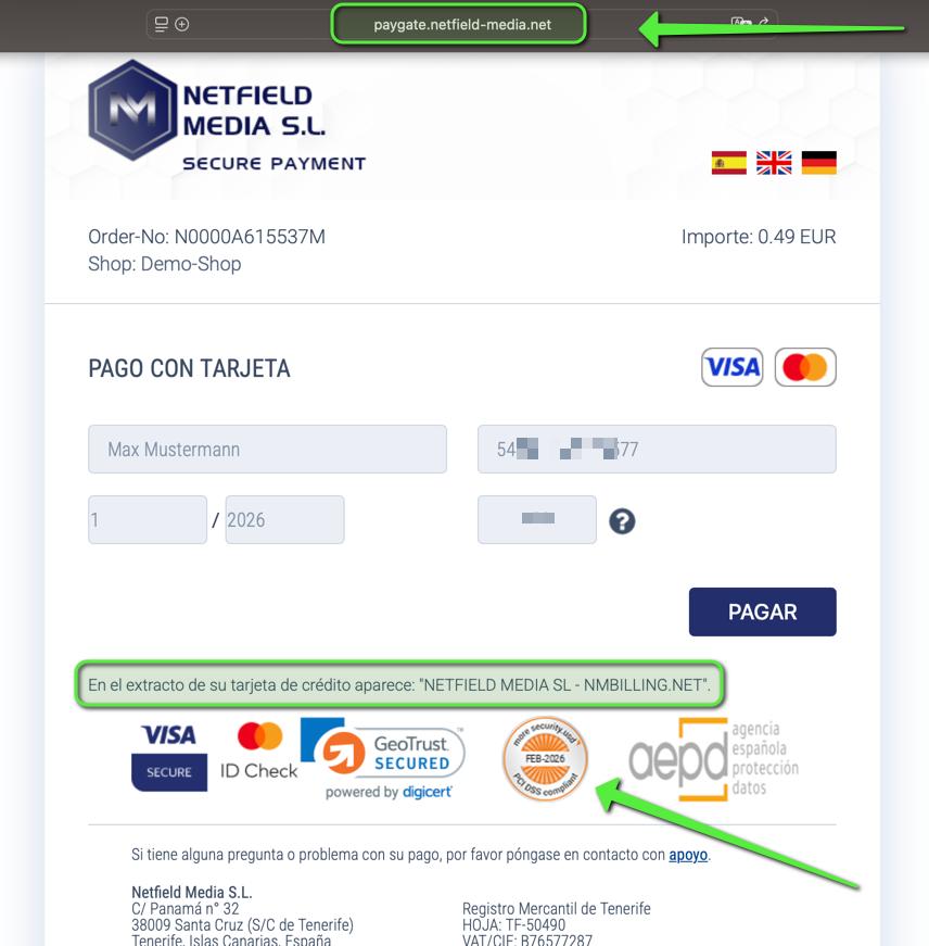 Sí, pero no como un proceso visible de principio a fin desde la perspectiva del titular. Lo que puede seguirse son las distintas etapas: el checkout controlado como punto de entrada, el recorrido técnico del pago, el paso de autenticación mediante 3-D Secure cuando aplica y, al final, el cargo visible en la tarjeta. Quien quiera ver ese punto de entrada en la práctica puede hacerlo a través del demo shop. Muestra el inicio visible del recorrido, pero no sustituye la infraestructura operativa que hay detrás.