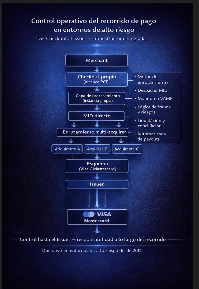 Esta diferencia se aprecia con especial claridad en high risk payment. Allí donde las exigencias de los acquirers son más estrictas, los procesos de revisión más duros y los márgenes de tolerancia menores, no basta con un flujo que funcione de manera formal. En esos entornos se ve con rapidez si una ruta de pago está realmente controlada desde el punto de vista operativo o si solo parece estable mientras no haya desviaciones, consultas o incidencias. Por eso, el control previo a la autorización no es un matiz teórico, sino una diferencia práctica en la solidez del recorrido.